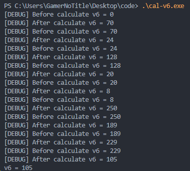 printf("[DEBUG] After calculate v6 = %d\n", v6);