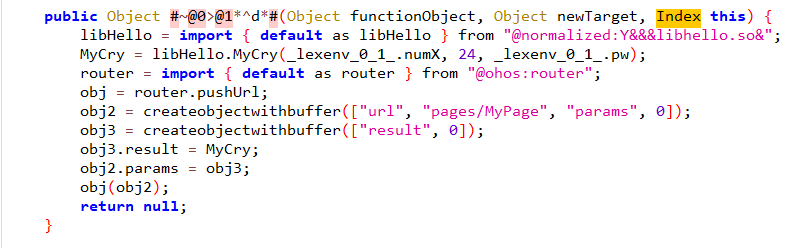 最后一个函数会调用libHello.so中的MyCry方法,并传入用户的输入,前面几张图片则是密文数组和验证逻辑的一些函数,接下来要去libHello.so寻找其他的加密逻辑