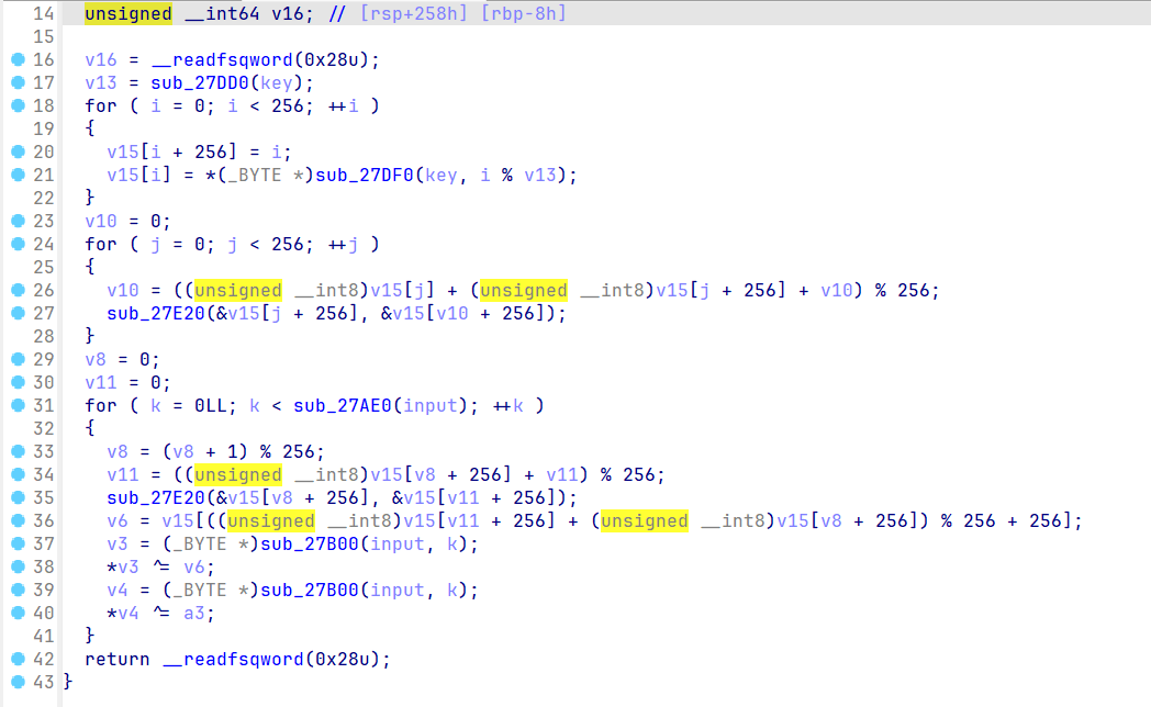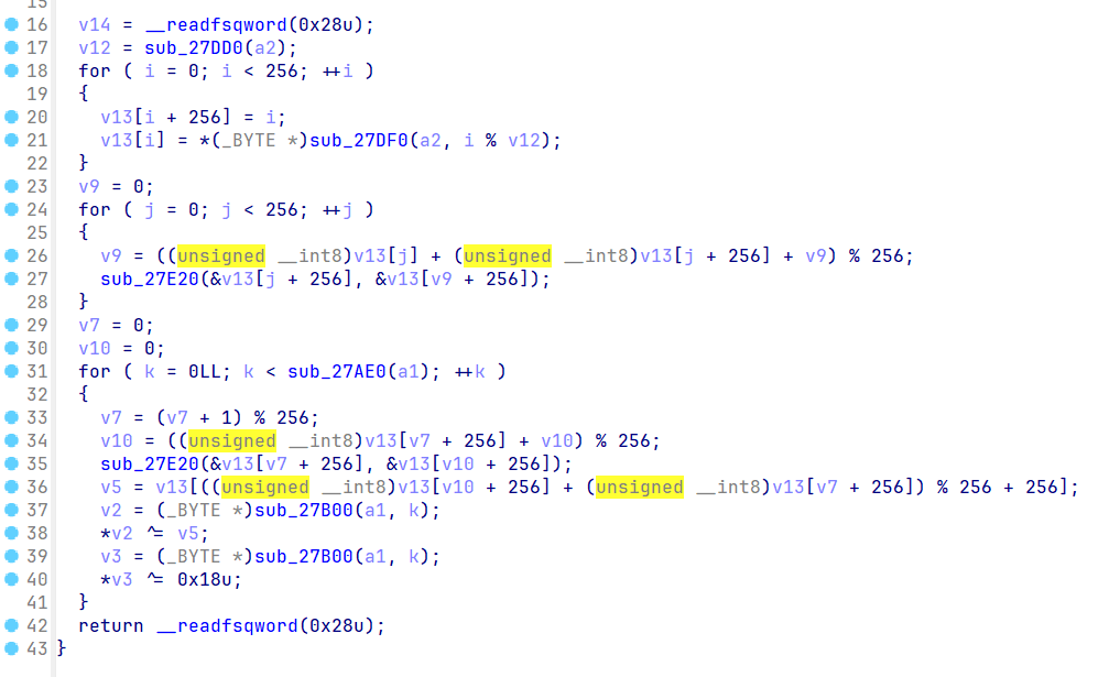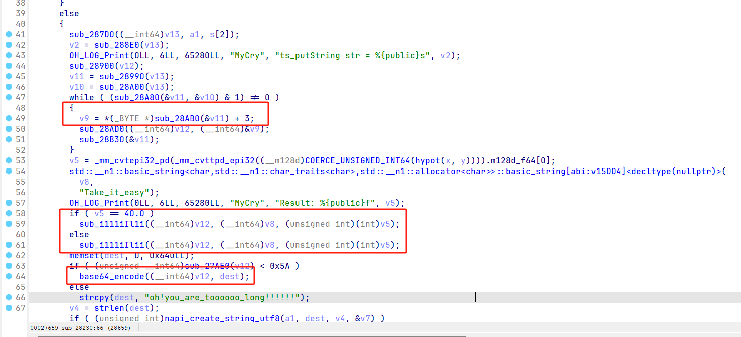 如图,关键函数的位置已圈出来,其中掺杂着很多的函数,查看之后发现是一些简单的运算被封装成函数了而已