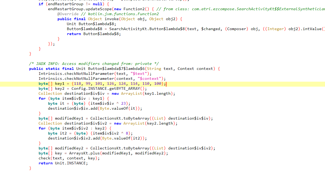 这是一个Jetpack Compose框架开发的app,在Java层有大量与解题无关的函数,一开始不知道,导致我也在这浪费了很多时间