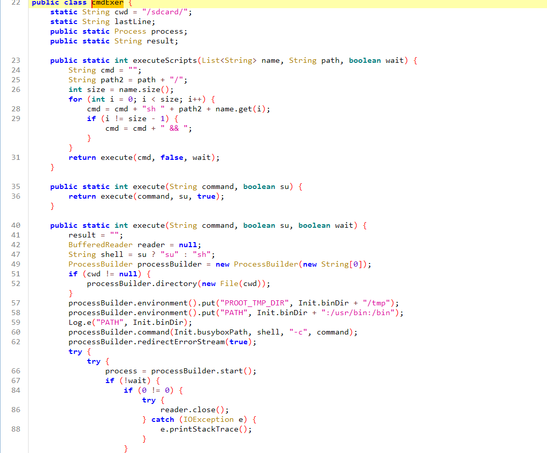 初始化会调用到这两个类,实现了一个命令行执行器,接下来就去解压的env里面找有没有可疑的文件
